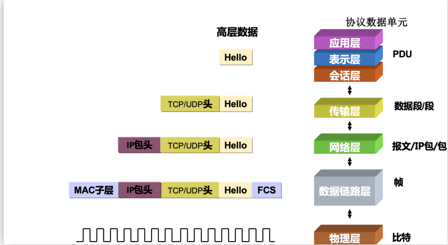 上图表示一个数据包从上层到下层封装的完整结构。